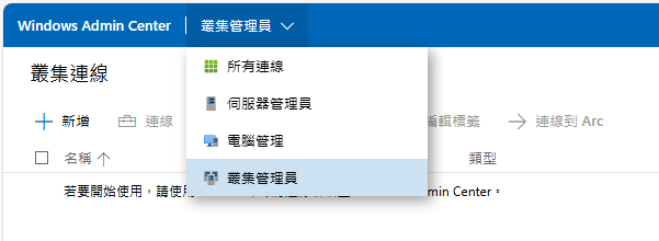 在完成Windows Admin Center的安裝與登入後,如圖1所示便可以從頁面選單中管理三種不同的連線設定,分別是伺服器管理員、電腦管理、叢集管理員。其中針對非叢集架構下的Hyper-V虛擬機器,可直接透過「伺服器管理員」的連線進行管理,如果是叢集架構下的Hyper-V虛擬機器,則必須經由「叢集管理員」的連線來做管理。