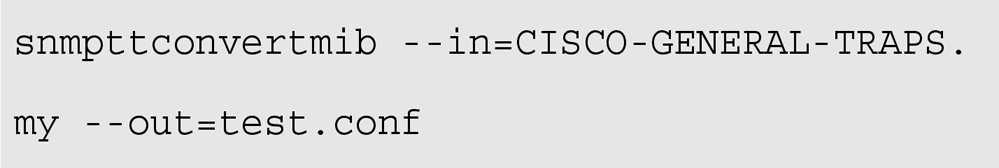 如前所述,許多Unknown Trap無法判讀,因此要透過工具程式將之轉換為MIB。在此例中,將使用snmptt中的snmpttconvertmib進行轉譯的動作,它的運作方式是將MIB檔讀入後,把轉換時須對應的格式記錄在snmptt.conf檔案內,之後當新的Trap進來時,就可以比對該格式找出對應的MIB名稱,並寫入snmptt的Log檔中。