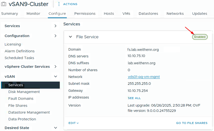 圖4 順利啟動vSAN檔案服務。