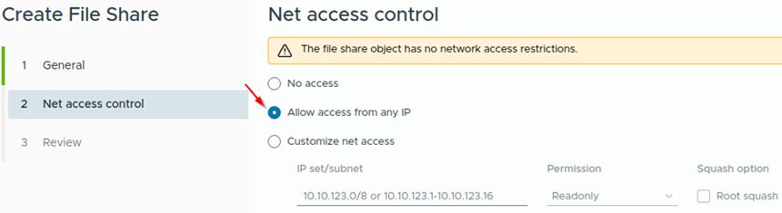 在2. Net access control頁面中,可以組態設定只有指定的IP網段才能存取這個NFS檔案共用,並且設定權限為Readonly或Read/Write,也可以用IP網段搭配No access權限來建立黑名稱機制,讓某個IP網段無法存取之外,其餘網段都可以存取。本文實作環境為了簡單起見,選擇「Allow access from any IP」項目,允許任何IP網段都能夠存取此NFS檔案共用,如圖7所示。