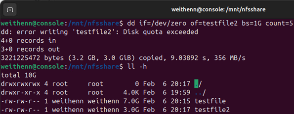 測試NFS檔案共用Quota機制