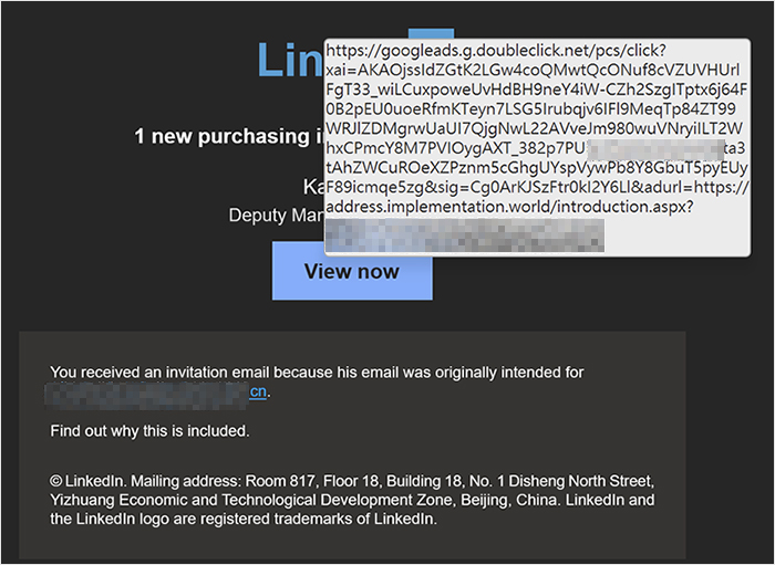 1. 濫用「連結置換(URL Rewriting)」防護機制:攻擊者利用遭駭的企業帳號發信,其內含的惡意連結已被微軟或資安廠商的防護機制改寫(如Safelinks)。使用者看到連結帶有資安廠商網域,誤以為經過掃描確認安全,反而降低戒心,如圖1所示。