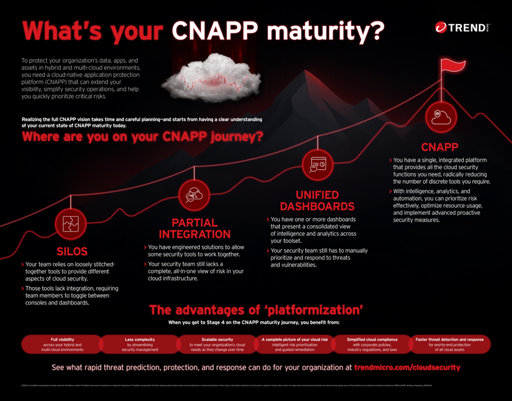 轉型到雲端原生應用程式保護平台(CNAPP)並非一蹴可幾,但越來越多組織正將CNAPP視為強化雲端安全的關鍵策略,並積極採取行動。本文將闡述企業加速轉型的原因,並提供一份易懂的指引,協助企業快速評估自身CNAPP成熟度所處的階段。