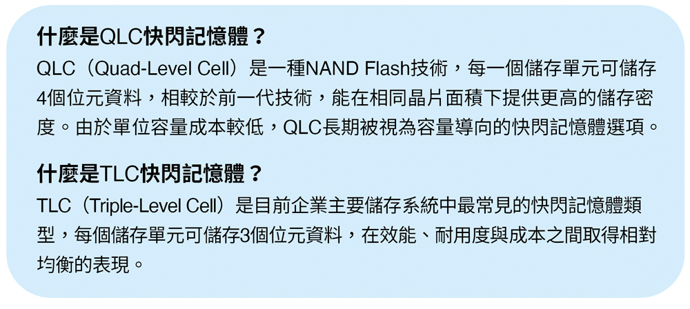 長期以來,QLC(Quad-Level Cell)用於主要儲存的討論,往往被視為在成本、效能與可靠性之間的取捨。由於QLC每個儲存單元可儲存4個位元,相較於TLC(Triple-Level Cell)在單位密度上更具優勢,市場普遍將其定位於容量導向或次級儲存應用。