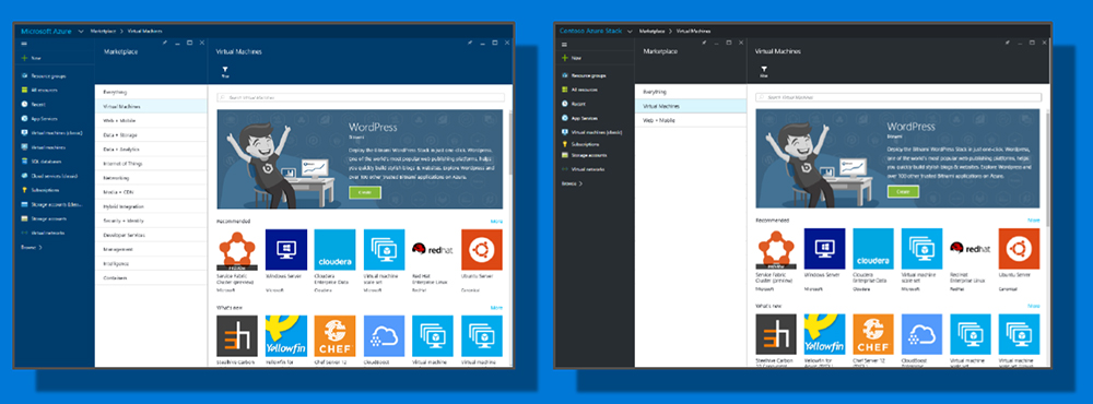 Azure Stack整體解決方案中可分為兩個層面,一是為了簡化部署而與硬體製造商合作打造的Azure Stack整合式系統,前述已經有完整說明。而另一個層面則是Azure內容與服務的架構提供,現階段,微軟已經將七成在Azure上常用的服務下放到Azure Stack。尚未包括的例如人工智慧、深度學習、資料科學分析等應用都需要龐大的運算能力,若是要在企業內部使用必須要有足夠運算資源,以Azure Stack整合式系統目前的硬體規模來說遠遠不足。但在未來的藍圖中,微軟也會將這些大型服務的規模縮小,並且下放到Azure Stack中。