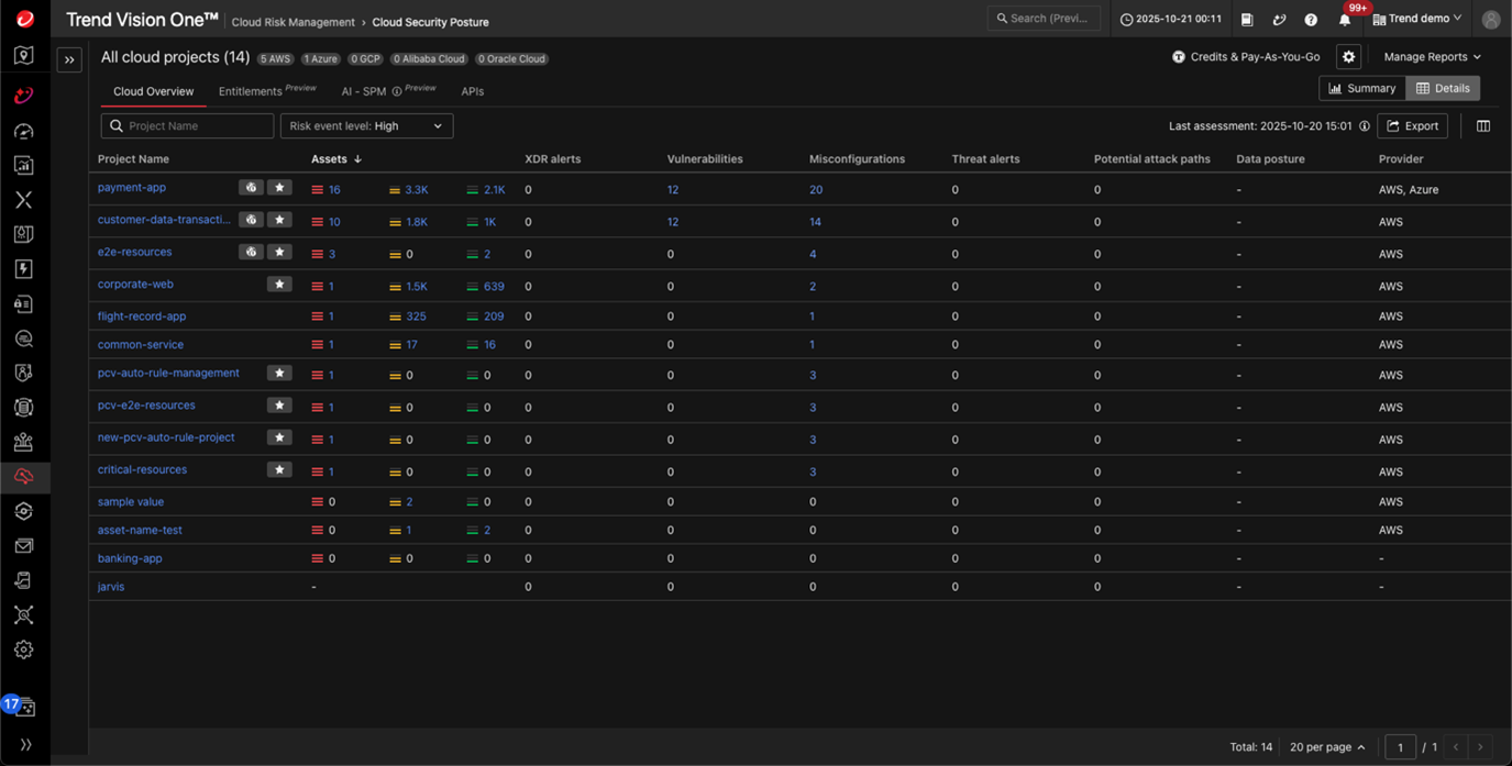 傳統的雲端資安態勢管理(CSPM)工具通常將雲端資產視為各自獨立的個體,而非整個大型生態系的一環,這種零散的作法無法呈現資產、團隊與營運關鍵專案之間的關係。專案檢視可翻轉典範,將雲端資產整理成符合邏輯的專案。如此一來,資安團隊就能根據雲端基礎架構的建構及營運方式(也就是情境)來評估風險。