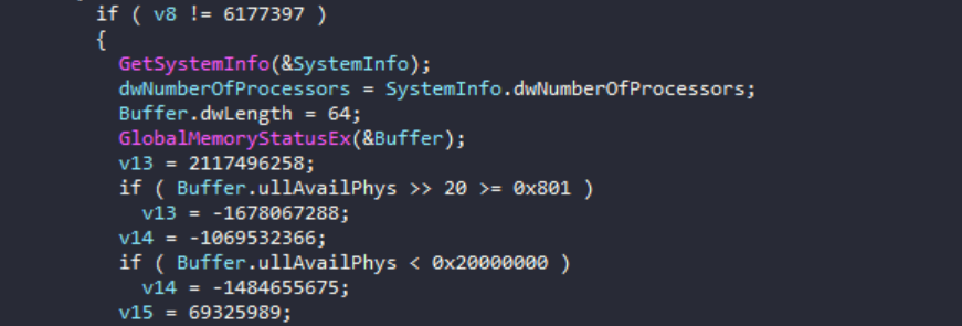 Vidar 2.0一開始會先執行一個完整的初始化階段,此階段會建立多執行緒架構,並透過複雜的狀態機器來混淆程式的控制流程。接著,惡意程式會執行大量的反制分析檢查,包括除錯器偵測、時序驗證、系統運作時間檢查以及硬體分析,確保惡意程式只在真正的受害系統(而非分析環境)當中才會執行。這些檢查必須全部通過,程式才會繼續執行,只要有任何一項檢查沒通過,程式就會立即終止,這是為了躲避沙盒模擬分析環境的偵測。